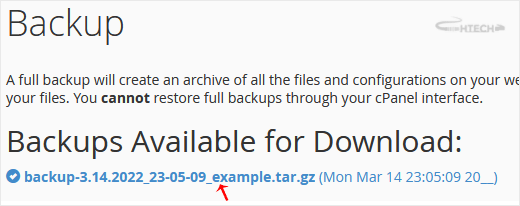 After the cPanel backup is finished, you will receive a notification. You can download backups from Backup > Download a Full Account Backup.