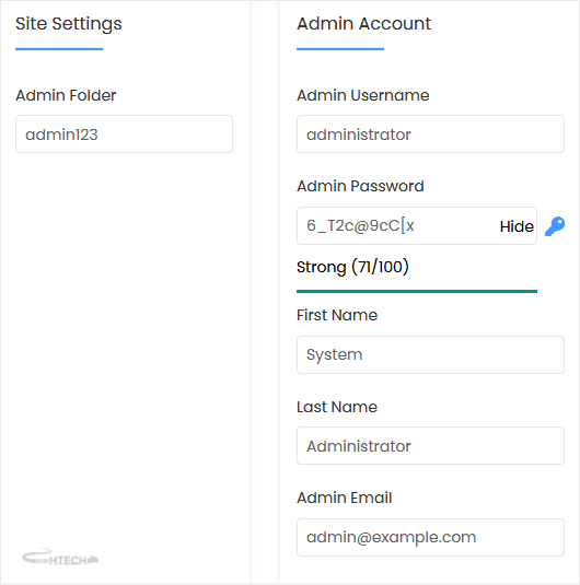 • Admin Email: Your email address. It is helpful for admin account password reset, notification, etc.