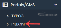 4. On the left side, locate the Portal/CMS category. Click on it and then on the PluXml link that appears.